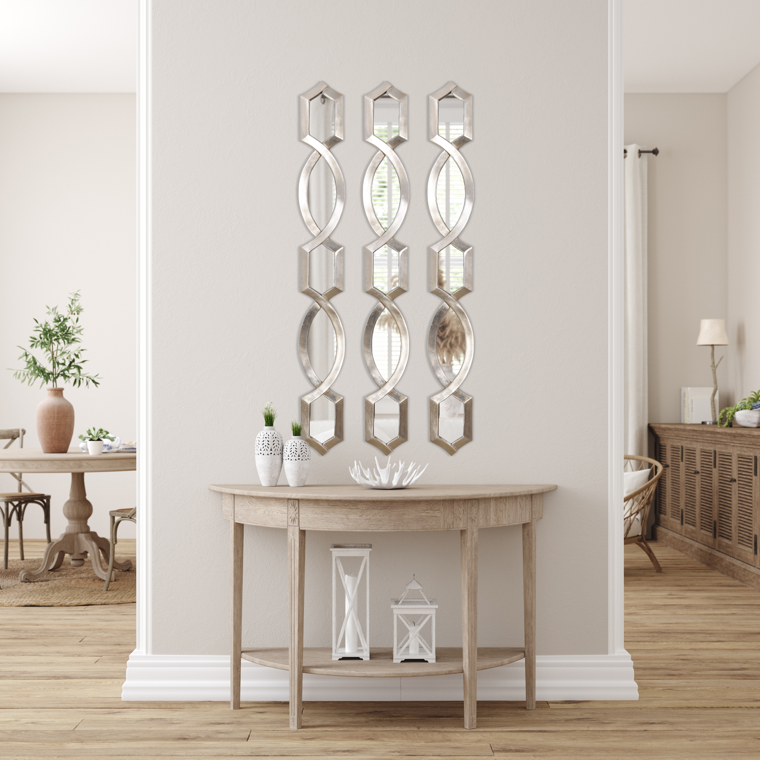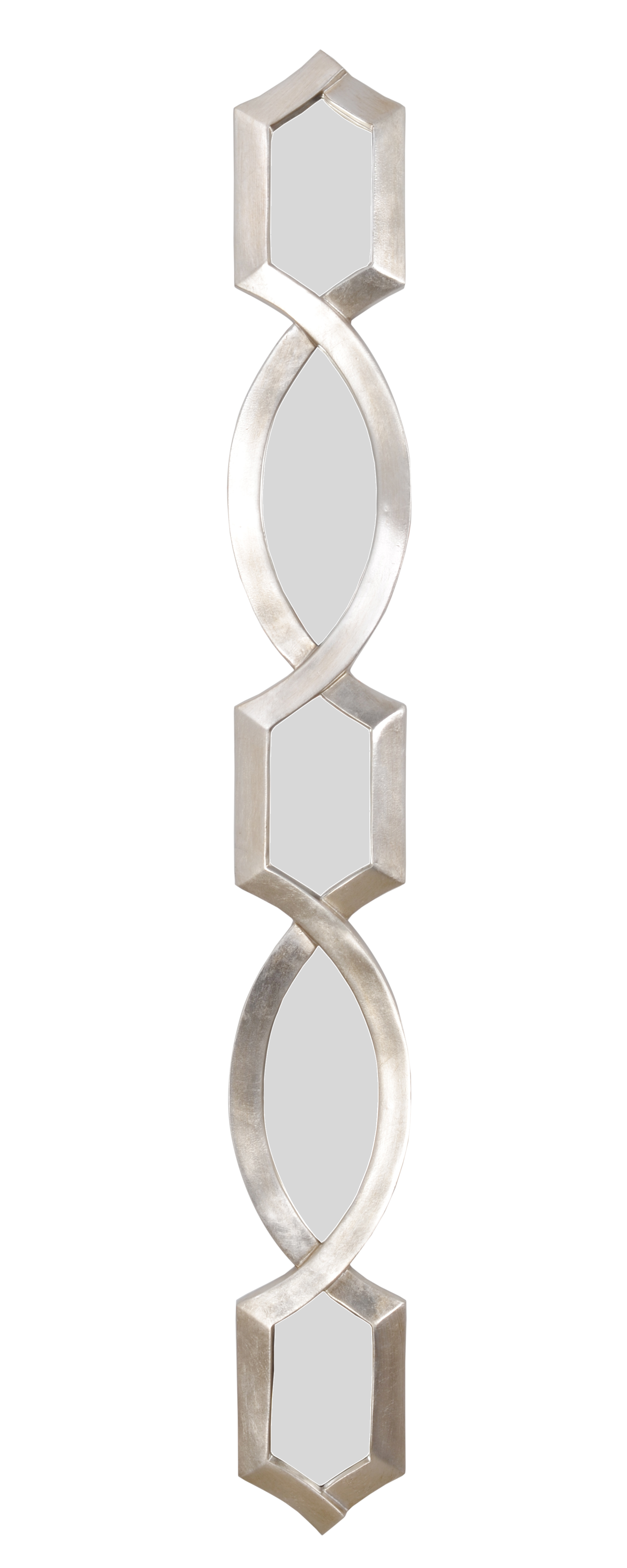 Measuring 6 inches in width by 48 inches in height, the Diamond Stack Accent Gallery Wall Mirror brings depth and dimension to any setting. Reflections are more than just reflections—they bring spaces to life, infusing them with light and creating captivating focal points. While all mirrors serve a basic function, it's the style, design, and arrangement that truly inspire. The Diamond Stack mirror embodies simplicity and elegance, making it perfect for standalone use in a narrow niche or as part of a gallery wall, where multiple mirrors can be stacked for a striking effect. The symbolic stacking of diamonds in an infinity pattern speaks to the eternal bond and commitment we all share. Each mirror is meticulously cast and finished by hand, with genuine gold or silver leaf covering the frame in vibrant jeweled colors. The natural cracking and separation between the application of each leaf sheet add authenticity to the hand-applied finishing, enhancing the mirror's unique character. Equipped with D rings attached to the back, this mirror is ready to hang vertically, offering glamorous designer style and versatile placement possibilities. Whether you opt for flashy gold or sleek silver, the Diamond Stack mirror adds a touch of contemporary sophistication to any space. Please note that mounting hardware is not included.